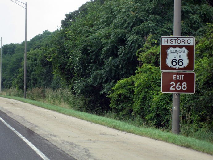 Skiltningen af Route 66 har vist sig at være forbavsende god og ude på I-55 var der tydeligt skiltet hvornår man skulle af for at følge Route 66 ind til Joliet. Fra Joliet har der også været gode skilte til at hjælpe en på vej og sammen med de medbragte kort og de vi finder på diverse turistkontorer, så er vi dækket godt ind.