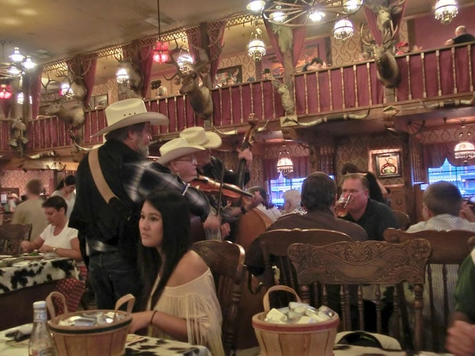 Jeg kender mine begrænsninger og havde derfor ikke lyst til at punge ud for en bøf på to kilo så jeg nøjedes med en rib eye på 340 gram. Mens vi sad og ventede på vores mad kiggede vi rundt på det travle sted, hvor bl.a et lille orkester gik rundt og tog i mod ønsker og sang et par fødselsdagssange.