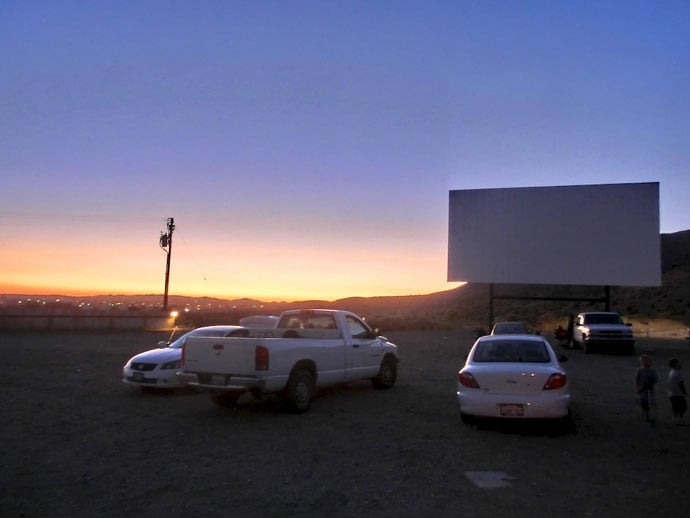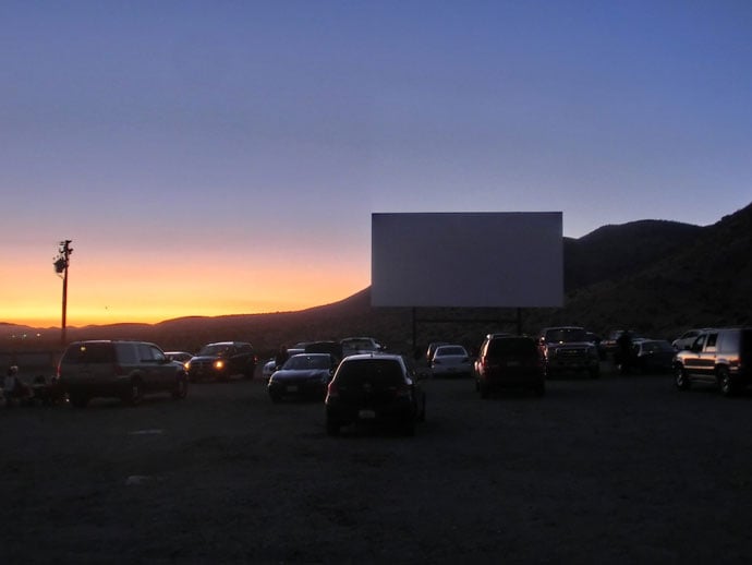 Vulkaner om dagen og smølfer om aftenen. Vi havde planlagt en tur i en drive-in biograf i Barstow, efter en varm dag i bjergene og Mojaveørkenen på Route 66.