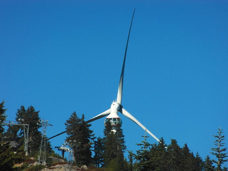På toppen af en vindmølle, er der en 360-graders glaskuppel, med uhindret udkig over Vancouver.