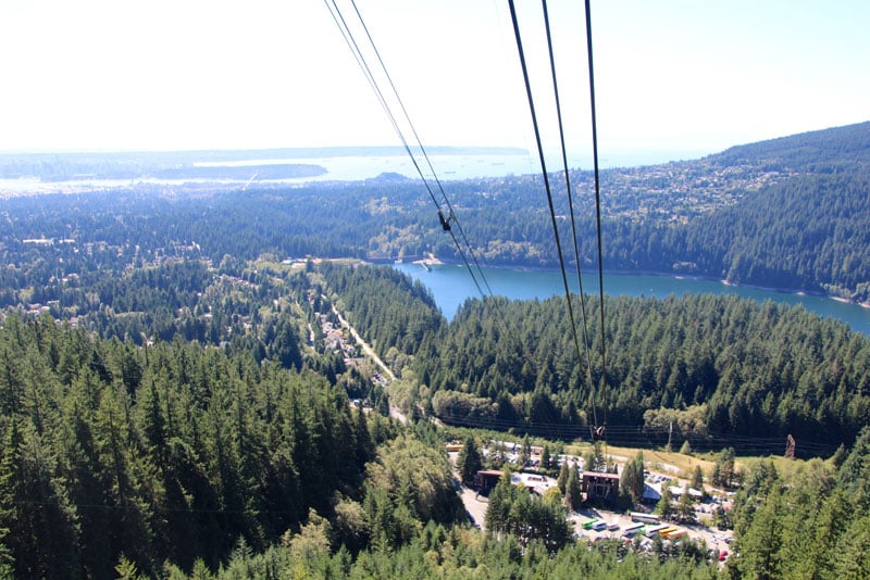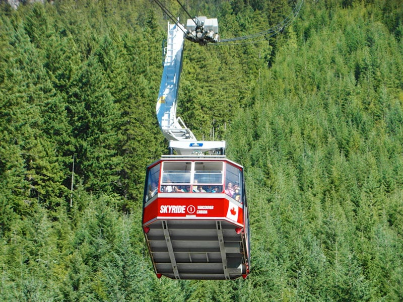 Oplevelserne på Grouse Mountain starter allerede i den store gondol lift.