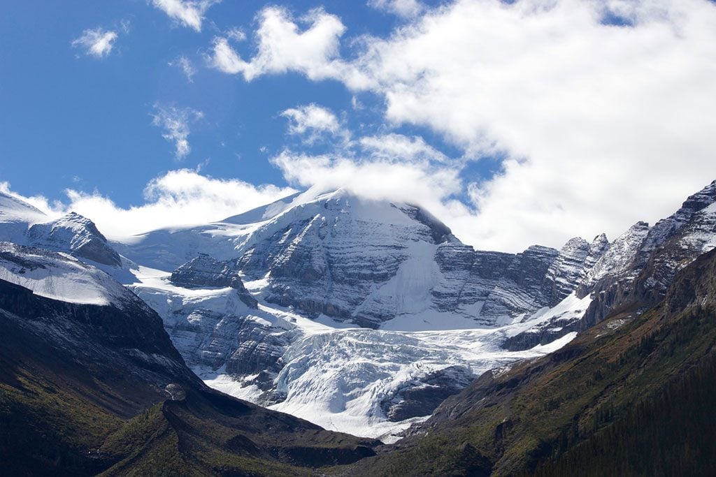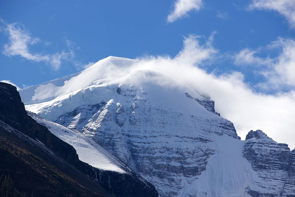 På vej ud, har du kig til Queen Elizabeth Ranges. Det er høje bjerge og da du er højt mod nord i The Canadian Rockies er det tinder med evig sne på toppen.