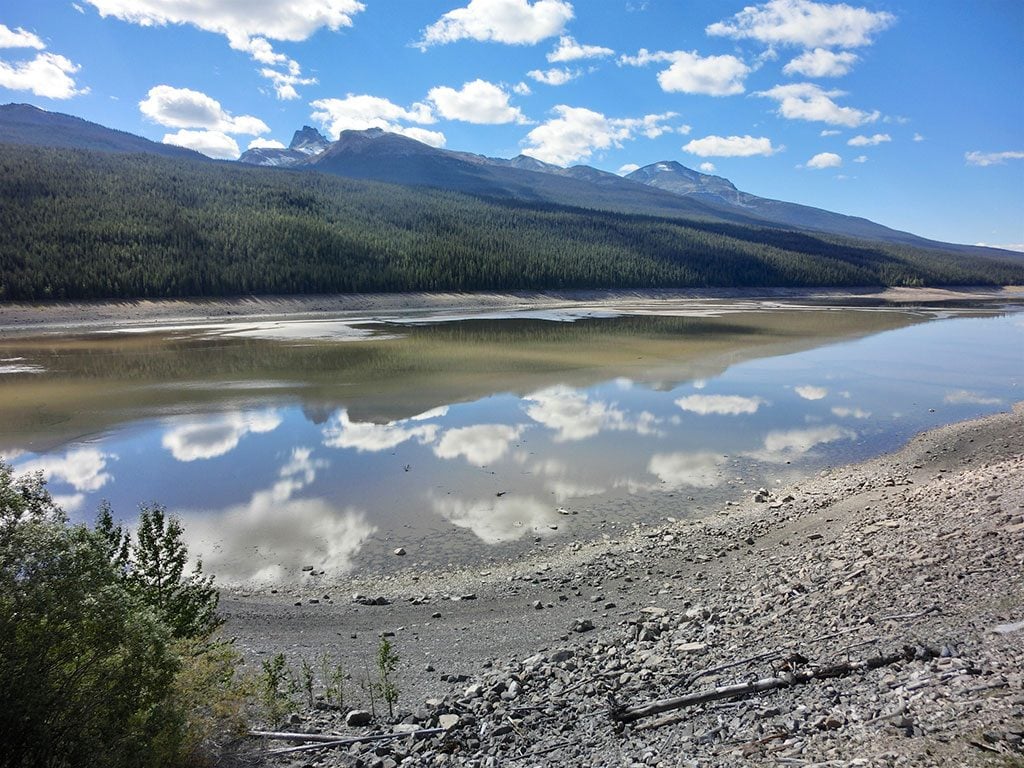 I den nordlige ende af Medicine Lake, er motivet som taget ud af et postkort. Vi var heldige med vind, vejr og skyer og søen stod næsten spejlblank til det perfekte billede.