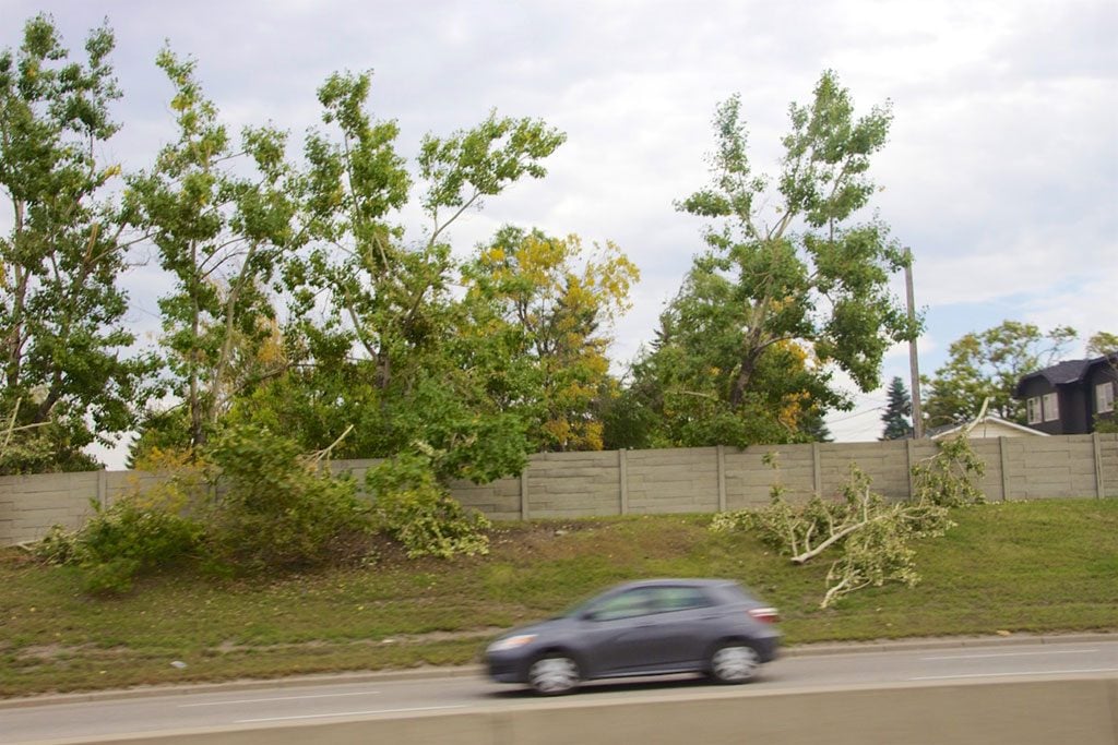 Mens vi kører rundt i Calgary kan vi se skaderne fra den store freak snestorm som ramte Calgary en uge før vi kom. De fik 10 cm sne, som beskadigede et par tusind træer og skabte strømafbrydelser.