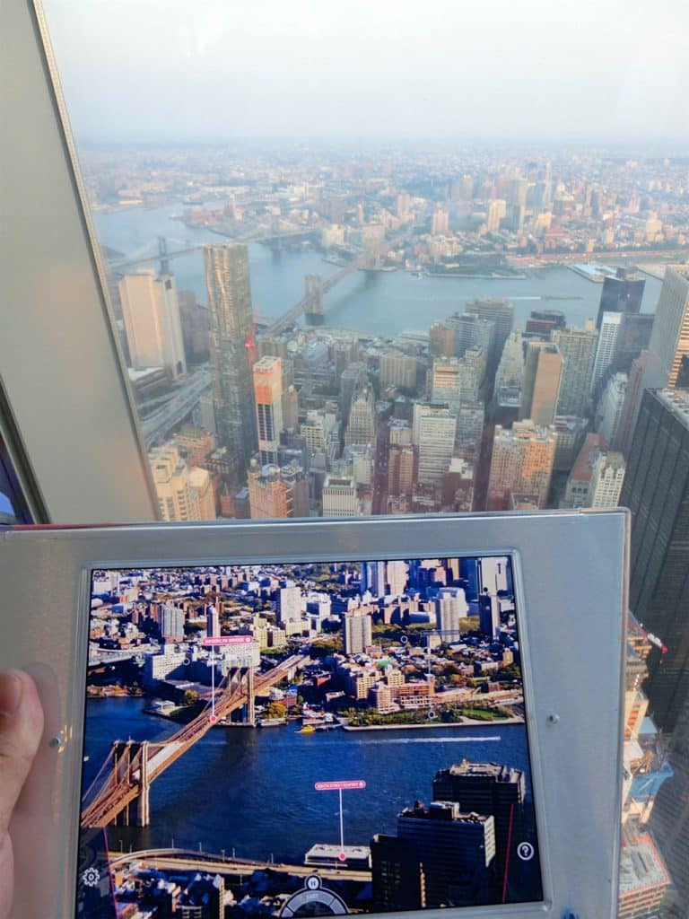 I One World kan du også leje en iPad der tilføjer et lag af info til din oplevelse på toppen af NYC. Den ved hvor du retter den hen, og du kan få yderligere info om bygninger og steder i NYC. God idé, men synes personligt ikke, den var 15 dollars værd.