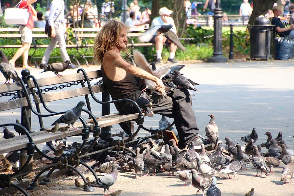 Paul the Pigeon Man er også en af de personligheder du kan opleve i Washington Square Park. Han sidder omsværmet af duer og fodre dem.