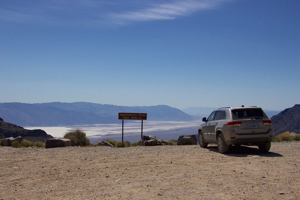 På toppen af Aguereberry Point er du 2 km oppe. Fra den lille parkeringsplads kan du kravle lidt højere op og få et par vinkler på Death Valley, som du ikke kan se fra parkeringspladsen