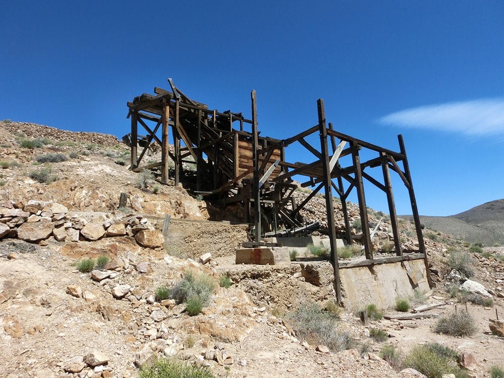 På turen ned og ud via grusvejen er der to stop: Eureka Mine og Aguereberry Camp.
