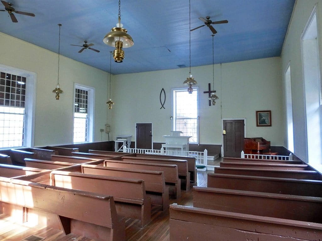 Kirkegården er tilgroet og lidt spooky med det Spanish Moss som hænger på træerne.