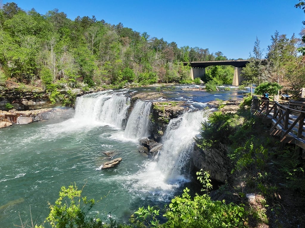 Min tur startede i den nordlige ende ved Little River Canyon Falls Park. Her kan du komme nogenlunde tæt på det store vandfald og opleve det oppe fra landevejen eller nede i vandkanten.