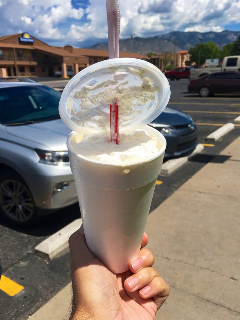 Da vi havde bestilt burgeren, blev vi gjort opmærksom på en Green Chile Milkshake. Den var en positiv overraskelse. En klar anbefaling her fra.
