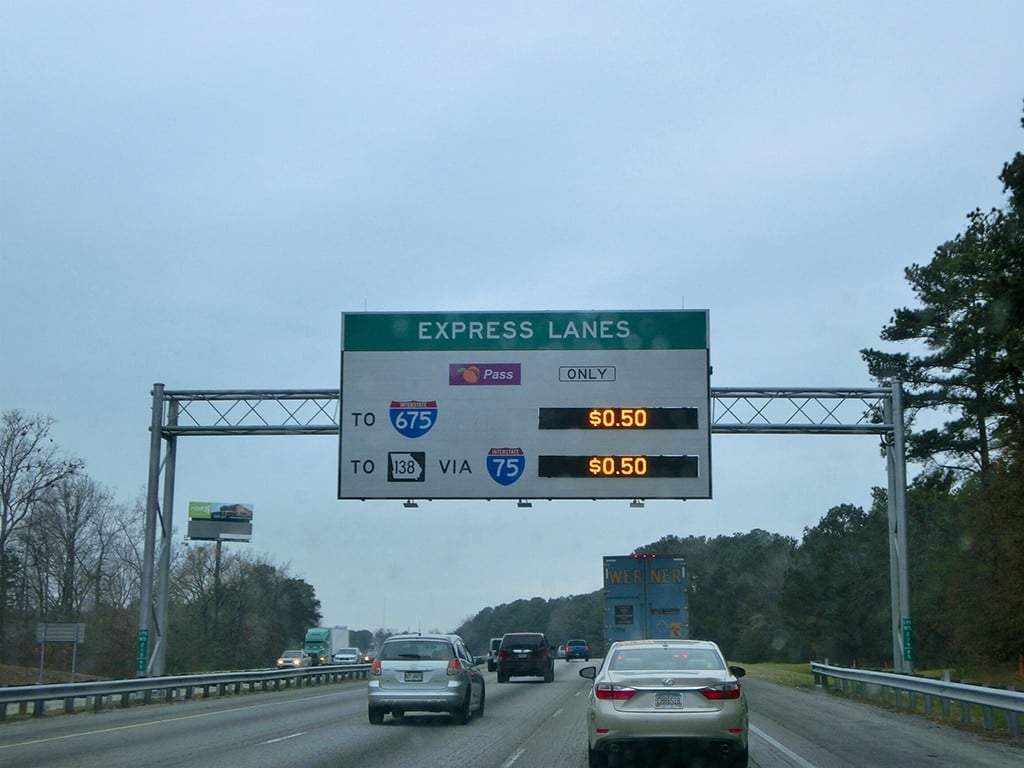 Atlanta har ikke dedikerede toll roads (betalingsveje), men flere steder er der Express Lanes som du skal betale for at bruge. Følger du skiltene, bør du ikke få problemer med at undgå dem ud til lufthavnen.