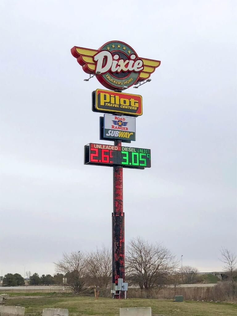 Fordi det meste havde lukket, herunder klassiske diners og andre food stops på Route 66, måtte jeg ty til et Dixie Truck Stop for frokost og et bio-break.