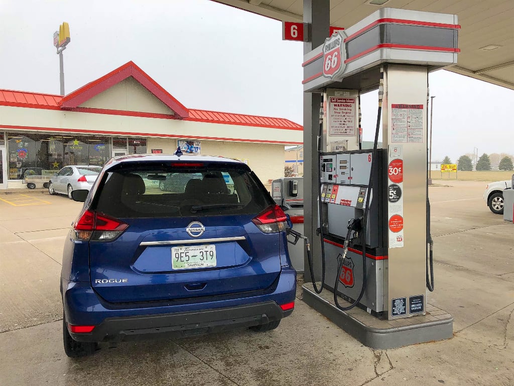 På vej til lufthavnen med min lejebil, stoppede jeg ind forbi en tankstation for at fylde tanken. Jeg havde lejet bilen med fuld-til-fuld.