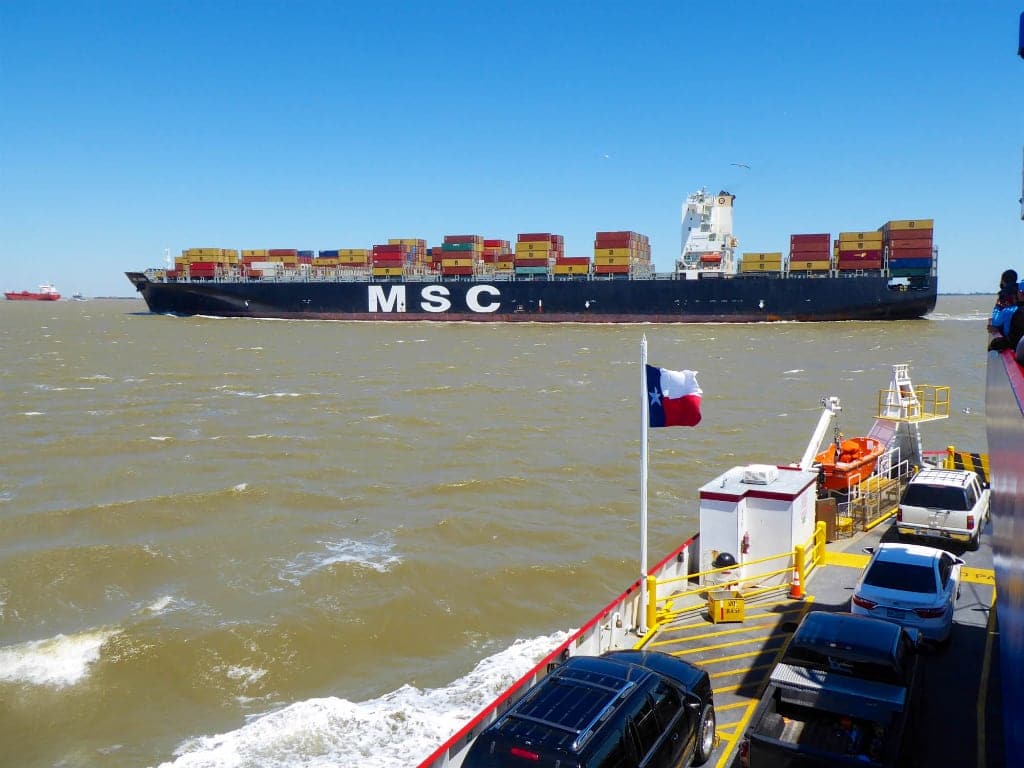 Med en bilfærge fra Galveston, kunne jeg starte min roadtrip med lidt bedre udsigt langs kysten end tilbage mod Houston og trafik.