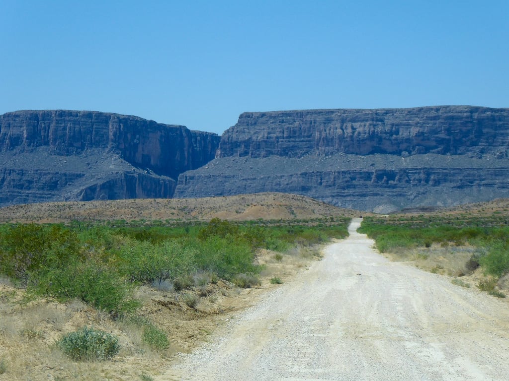 Fra Lajitas og Terlingua fortsatte jeg ind i Big Bend National Park. Jeg benyttede den vestlige indgang og kørte først mod Santa Elena Canyon. Eftersom jeg havde en SUV, så kunne jeg tage Maverick Road.