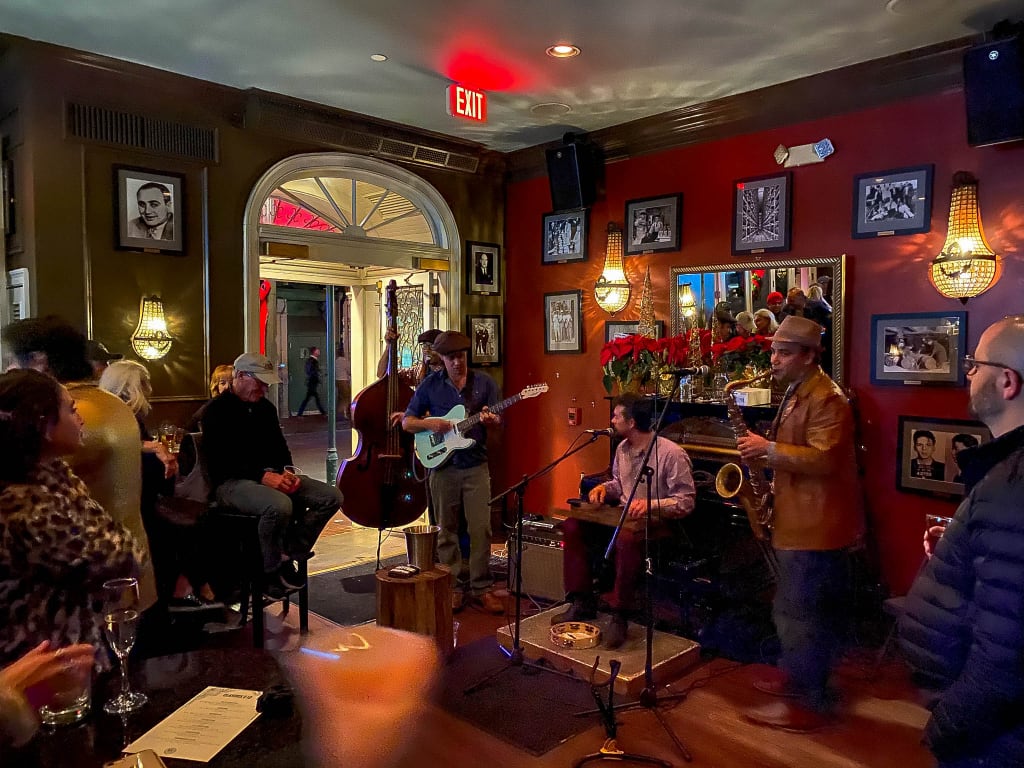 Jeg havde ikke bestilt tid nogle steder denne aften, men gik i stedet på opdagelse forskellige steder i French Quarter og Marigny i løbet af aftenen. New Orleans tiltrækker mange gæster i forbindelse med nytårsaften, men der var ikke proppet. Jeg tror der er flere gæster i byen til Mardi Gras. Jeg var forbi flere barer og restauranter, hvor der var fint med plads i tidsrummet 18-20. Nogle steder er der arrangerede selskaber og festivitas, som kræver en reservation, men du mangler ikke et sted at spise (og slet ikke at drikke) nytårsaften i New Orleans.
