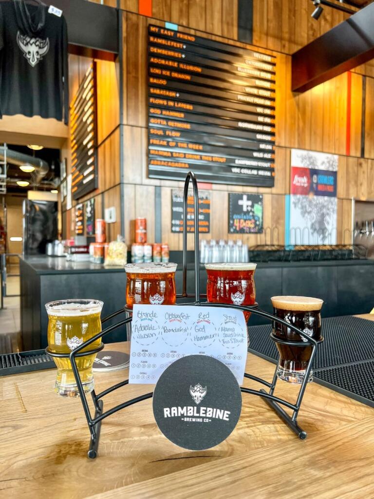 Parallelt med Main Street løber Colorado Avenue. Det er en up-and-coming gade i Grand Junction, hvor flere nye tiltag er dukket op de senere år, i renoverede industribygninger. Her fandt jeg Ramblebine Brewing Co. som ligger i en bygning med højt til loftet og plads både ude og inde. Denne dag var der ekstra gang i butikken, da der var et hold Paint & Pint i gang i den ene ende af lokalet.