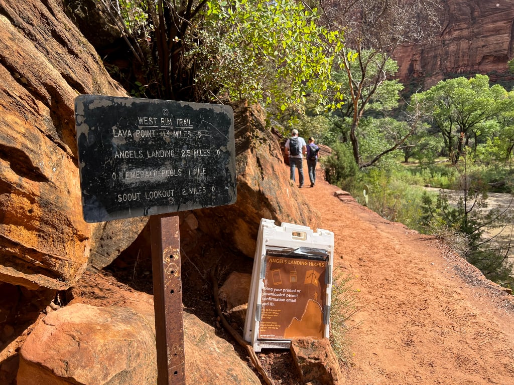 Jeg har ikke hiket Angels Landing (endnu). Hvis du ønsker at gå denne, skal du forberede dig lidt. Angels Landing er delt op i to sektioner. Den første er åben for alle, og er den længste del der tager dig op til Scout Lookout og en god udsigt. For at komme helt op, skal du have en reservation. Det foregår ved et lotteri hvor du kan vælge en dag ude i fremtiden og håbe på du bliver udtrukket. Du kan også prøve lykken og deltage dagen før. Du kan læse mere her.