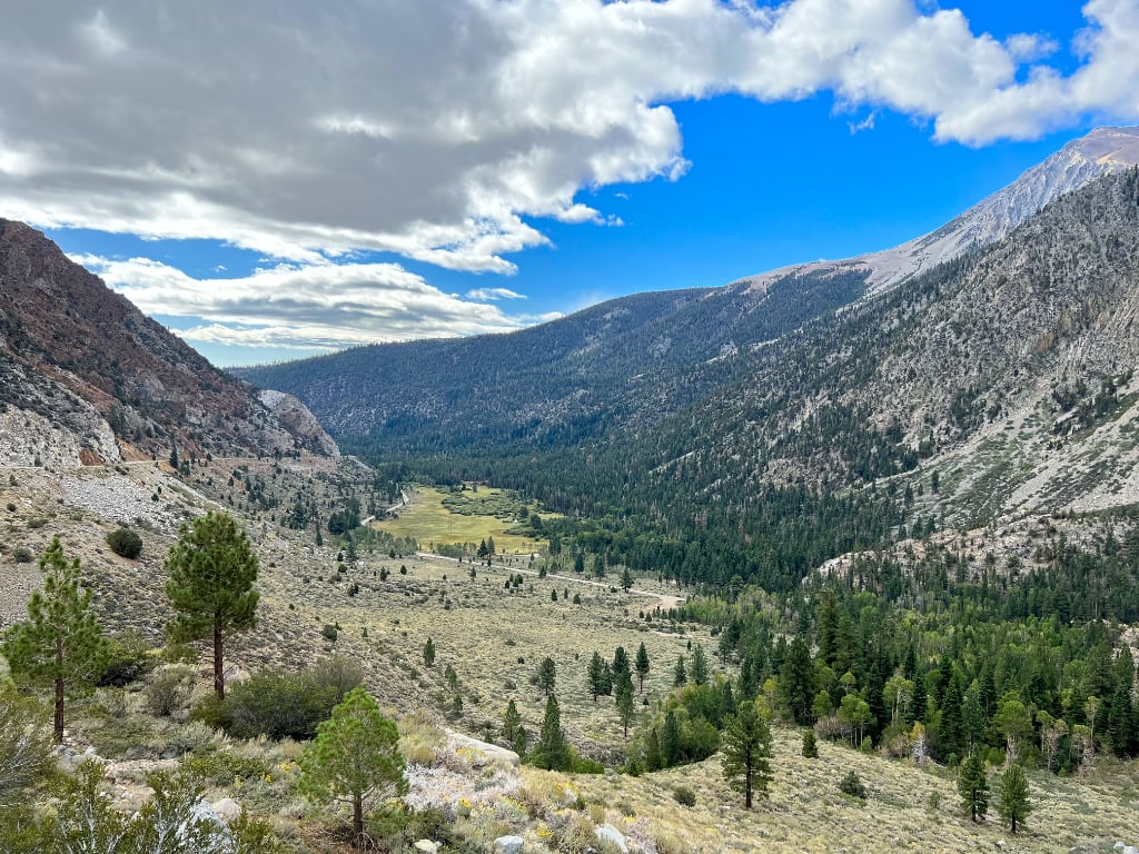 Kort efter indegangen ankommer du til et stort fladt og frodigt område. Det er Toulumne Meadows som byder på muligheden for at strække benene uden for meget højdeforskel, og opleve kontrasten mellem de frodige dale og de skaldede bjerge rundt om i horisonten.