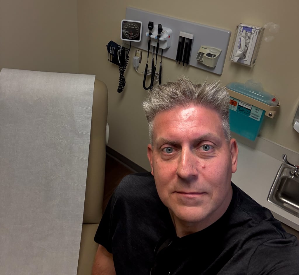 Kort efter dukkede en sygeplejerske op som kiggede på oplysningerne og fulgte mig ind i et exam room.